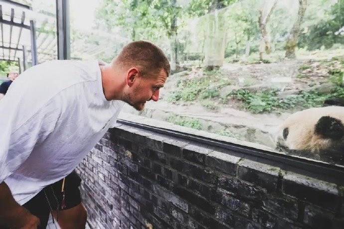直播吧7月20日讯近日,掘金球星约基奇开启首次中国行,他来到动物园参观了大熊猫。