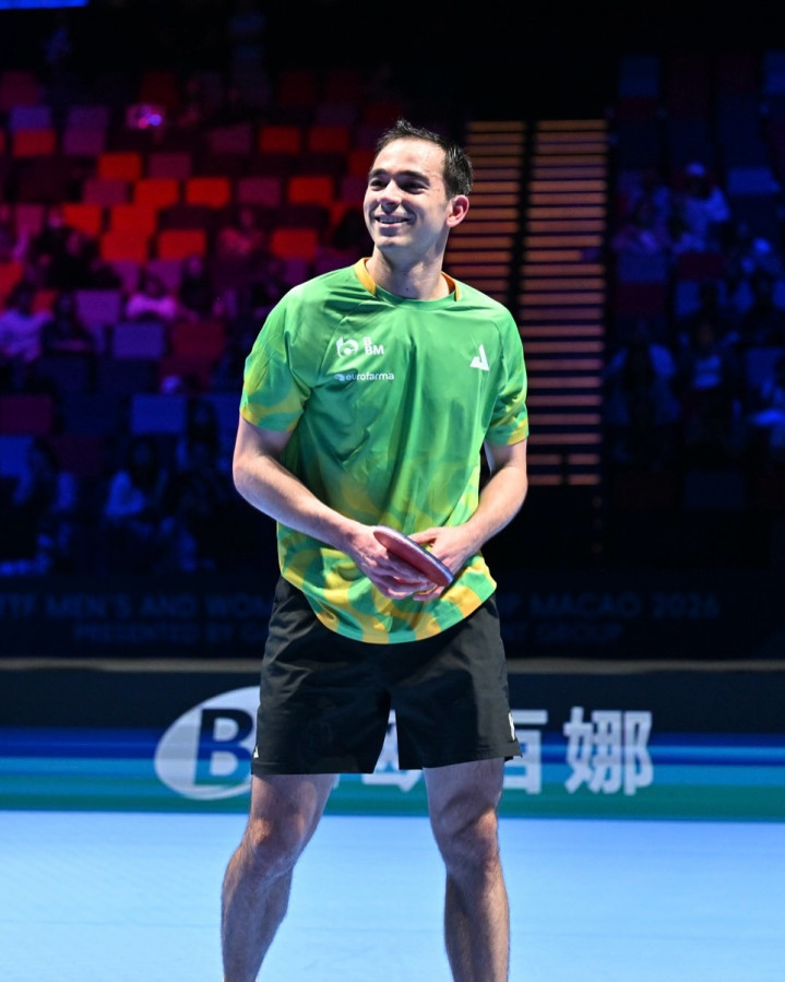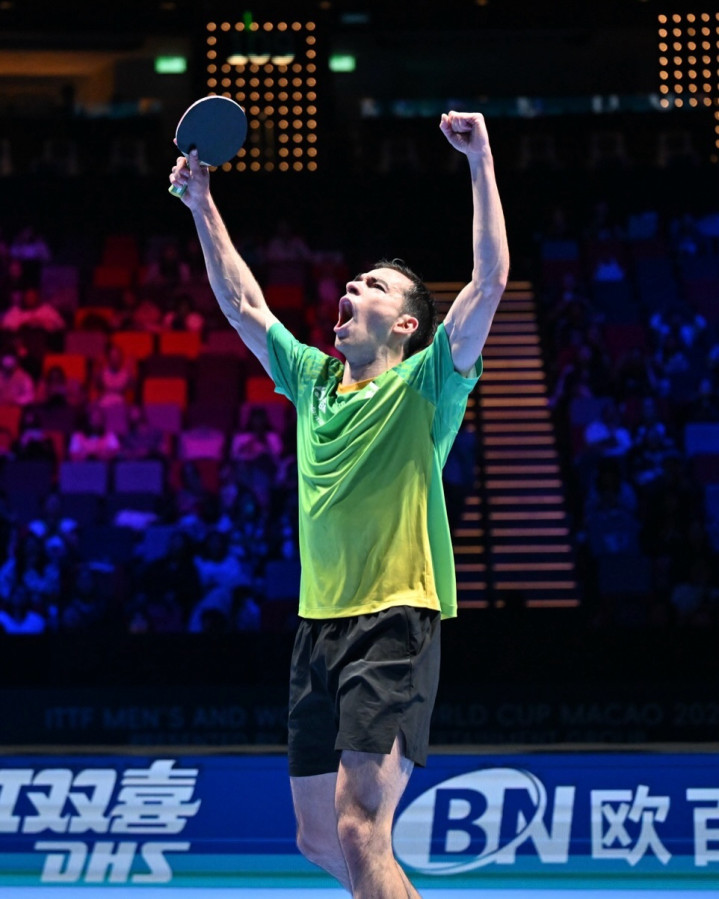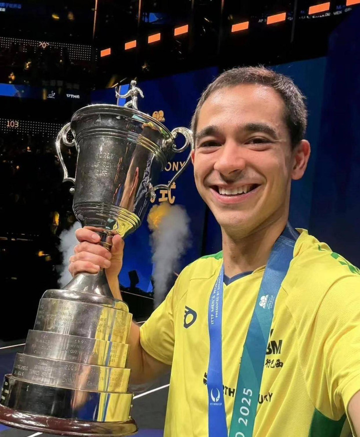 抛开这场颁奖礼上的“照片风波”,事件的核心人物雨果·卡尔德拉诺本身才是真正值得关注的对象。这位来自巴西的“美洲豹”,在过去两年间正以前所未有的速度改写着世界乒坛的格局。2025年的澳门世界杯,雨果迎来职业生涯的巅峰爆发:1/4决赛4比1击败世界第三张本智和,半决赛在1比3落后的绝境下连扳三局逆转世界第二王楚钦,决赛又以4比1完胜当时的世界第一林诗栋,连续击败世界前三选手登顶。