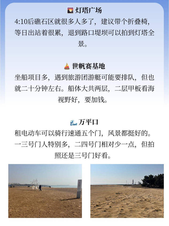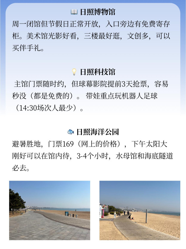 虽然去日照都推荐两日游,但有时间真的建议大家对待一天,这样才能不费劲就去遍所有景点,还可以避开12:00-16:00的紫外线!