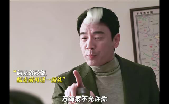 放完狠话又温和地让洪亮拿走自己为他准备的茶叶,这时他就像一只猫,对着熟悉的人虚张声势一下,其实只是游戏。