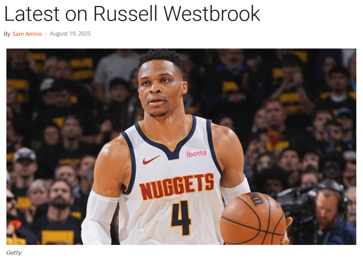 威少在今夏拒绝执行了掘金的25-26赛季球员选项,成为自由球员。根据最新报道称,国王队、热火队、尼克斯队和雄鹿队被认为是威少的潜在下家。不过需要说明的是,自从交易市场开启之后,威少一直与多支球队有过传闻,但是迄今为止仍没有签约。