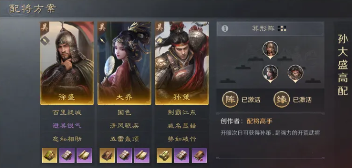 对于零氪或月卡党玩家,《三国:谋定天下》同样友好。推荐的“孙大盛队”以箕行阵站位为核心,搭配徐盛、大乔、孙策等武将,不仅战斗力强劲,还能通过合理的战法搭配,轻松应对各种战斗场景。而中、重氪大佬则可以尝试“大黄诸队”或“忠义弓队”,前者以黄盖、诸葛亮为核心,后者则以刘备、张飞、黄忠为骨干,无论是开荒还是PVP,都能展现出强大的统治力。此外,“桃园队”凭借其出色的回复和解控能力,成为开荒打地的首选阵容。