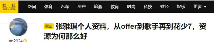 本文信源:搜狐娱乐《张雅琪个人资料,从offer到歌手再到花少7,资源为何那么好》