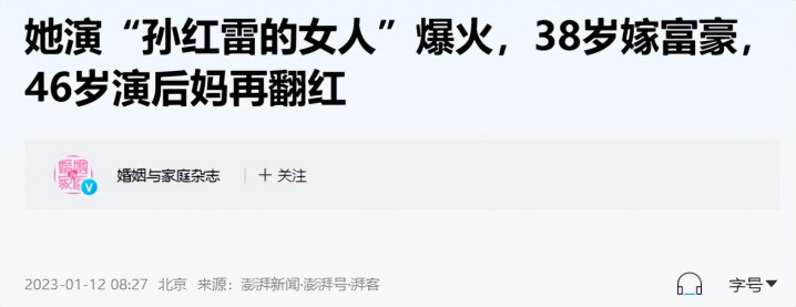 婚姻与家庭杂志——她演“孙红雷的女人”爆火,38岁嫁富豪,46岁演后妈再翻红