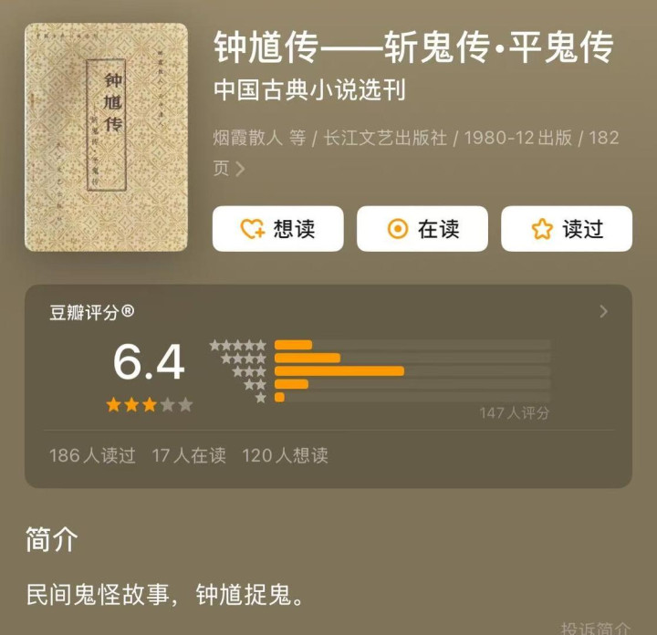 言而总之,三部钟馗清代小说,更像是落魄文人科举不第,便臆想同样不第的钟馗,替他们斩恶鬼,除奸佞,受天帝封赏。它们是一种自我安慰,而不能成为与《西游记》《警世通言》等比肩的既通俗又可玩味的文学佳作。若有施耐庵、吴承恩、曹雪芹等大才改编钟馗,恐怕其名声也不会弱于悟空。
