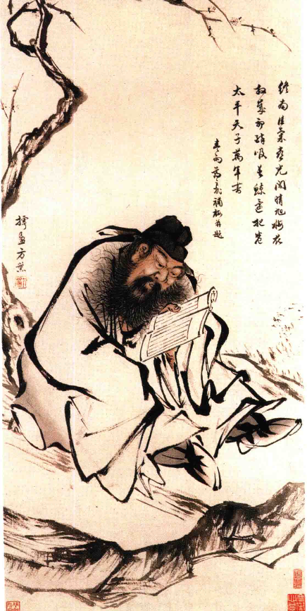 钟馗画,清方薰梅下读书(局部)
