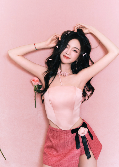 吴宣仪的夏日粉色玫瑰妆造, 这感觉如何?