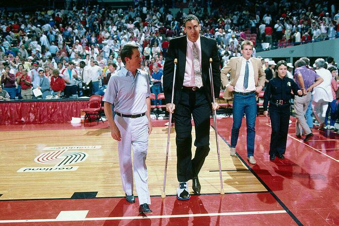 萨姆-鲍维就是开拓者在1984年选秀大会上不选乔丹而用榜眼签选择的中锋。