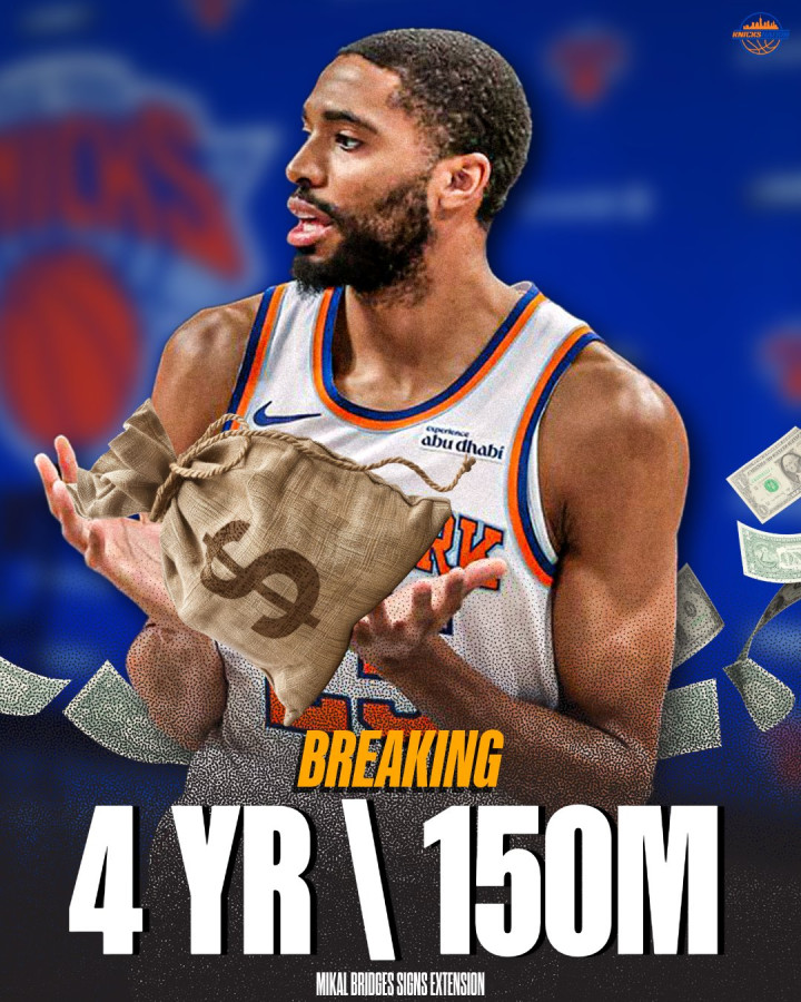 Shams报道,消息人士透露,布里奇斯已经同意与球队签下一份为期4年、价值1.5亿美元的续约合同,他的经纪人萨姆-戈德费德和乔丹-格特勒向ESPN透露了这一消息。这份新合同包含2029-30赛季的球员选项以及一项交易保证金。