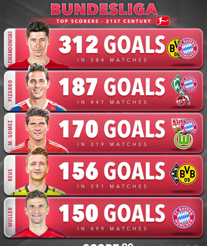 即便莱万已离开拜仁三年了,但这位21世纪德甲最佳球员在德国赛场留下的纪录,也堪称惊为天人了。至于有没有人能超越这个数字,只能说目前的德甲赛场还没能看出这一趋势。