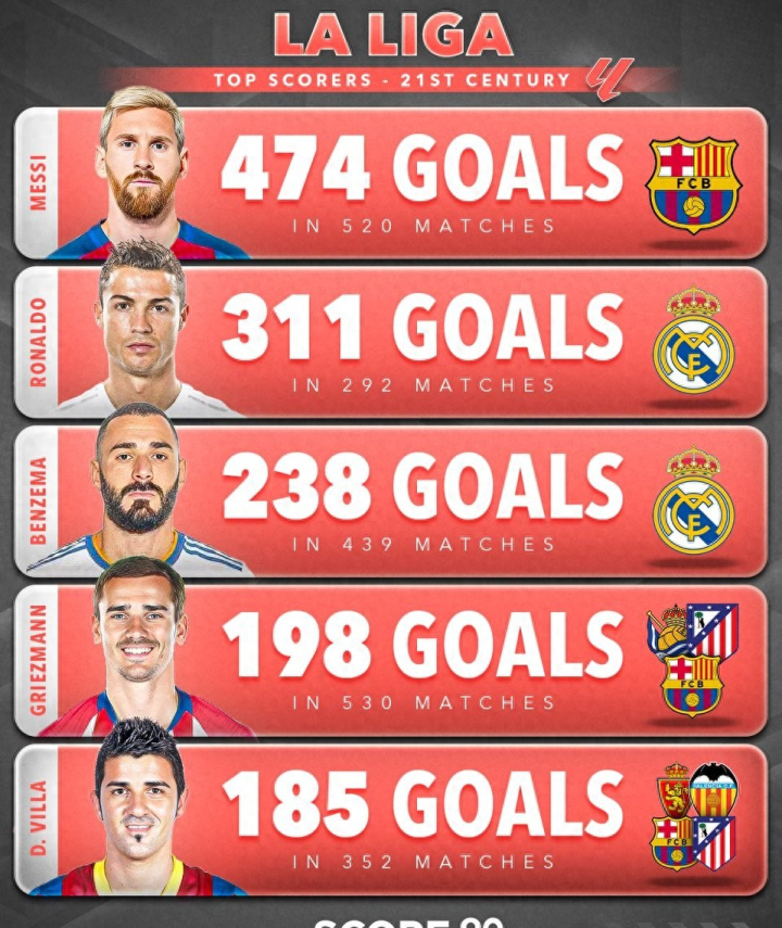 只对比这些令人难以置信的数字就会得出一个结论:西甲的后辈球员在短时间内想要改写梅罗留下的纪录,根本没有可能。毕竟,C罗所代表的高效和梅西所具备的持久高效,都是此二人能够领跑这一榜单的重要前提。