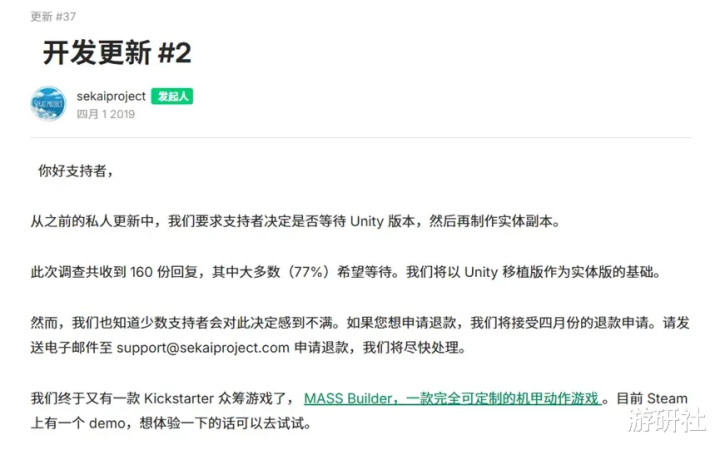 众筹当然是支持退款的。由于拖了太久,世界工程开放了退款渠道,声称“等不了的玩家可以申请退款”。