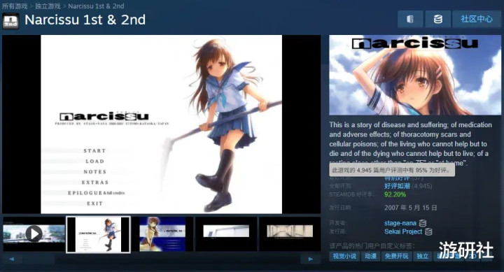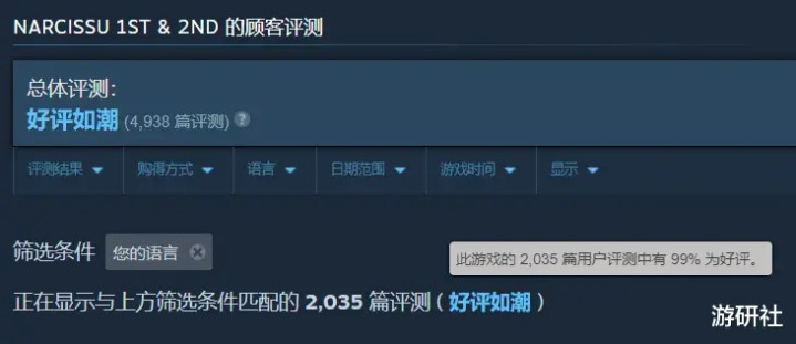 一个直观的例子,就是《水仙1&2》的Steam版本,有高达95%的好评率和近5000条评价——绝大多数销量,其实都来自已经玩过的玩家“补票”,但在Galgame领域已经属于超高热度。