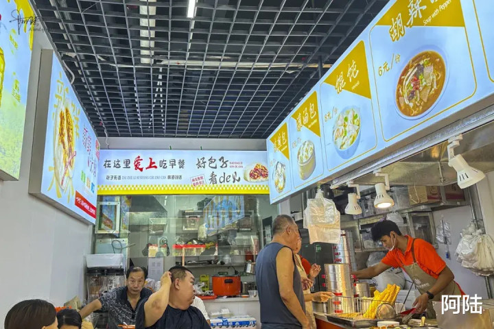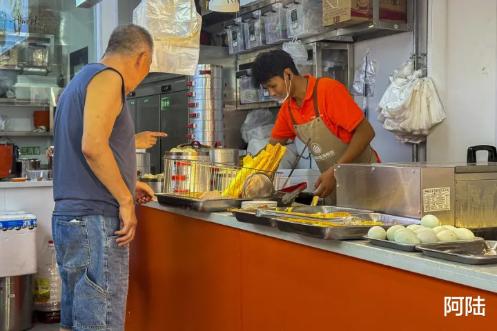到现场一看,生意果然非常火爆,室内的几张餐桌几乎座无虚席,好在我是“孤家寡人”,找个空位子还算方便,大不了跟别人挤一挤嘛。因为店面周围多是小区和楼盘,所以来这里吃早饭的,自然以当地人居多,着装都非常“随便”,不过也正是这种家常的氛围,更让我觉得十分亲切和美好。