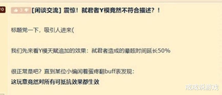 你以为这样就完了吗?其实不然,有玩家发现这个模组的效果竟然对所有可抵抗效果都生效!这下不许你们说弑君者弱,懂不懂对三控18秒的含金量啊。可能有玩家还不了解这是什么意思,简单来说就是如果敌人身上有6秒的冰冻、恐惧、晕眩这些效果,弑君者打一下都能给延长到9秒。君君直接变成控制端的王者,所有控制链最底层的代码,超长待机控制时间。君君直接变成控制辅助位,辅助的辅助,真的是强者处处是惊喜!