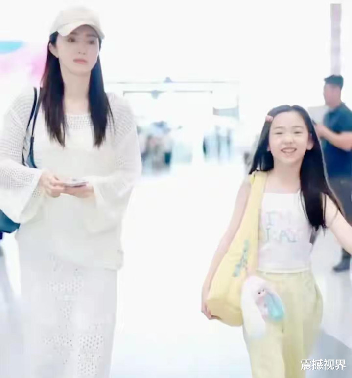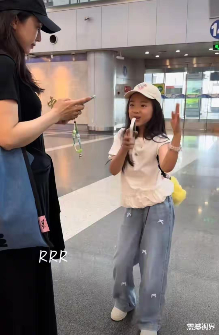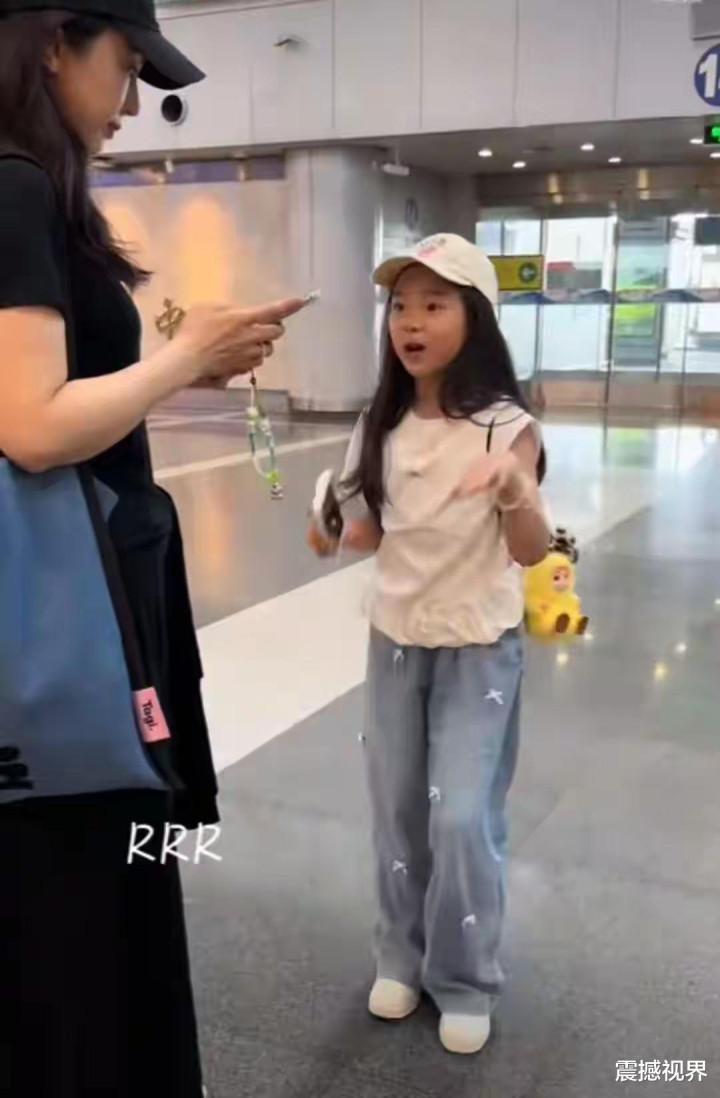 董璇女儿小酒窝去香港参加比赛: 9岁娃独自飞, 还把干妈哄得直乐