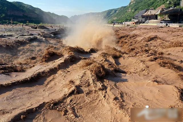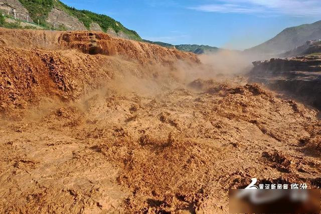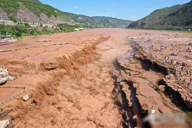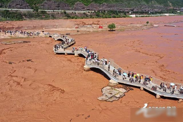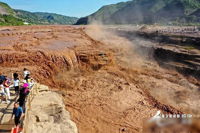8月23日,游客在吉县黄河壶口瀑布景区欣赏洪峰过后的壮美瀑布群。