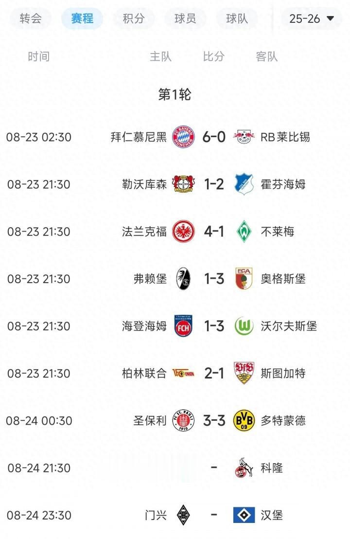 德甲首轮战罢多场,拜仁6-0大胜劲旅莱比锡,几乎锁定首轮榜首。反观其他强队,翻车一大堆。