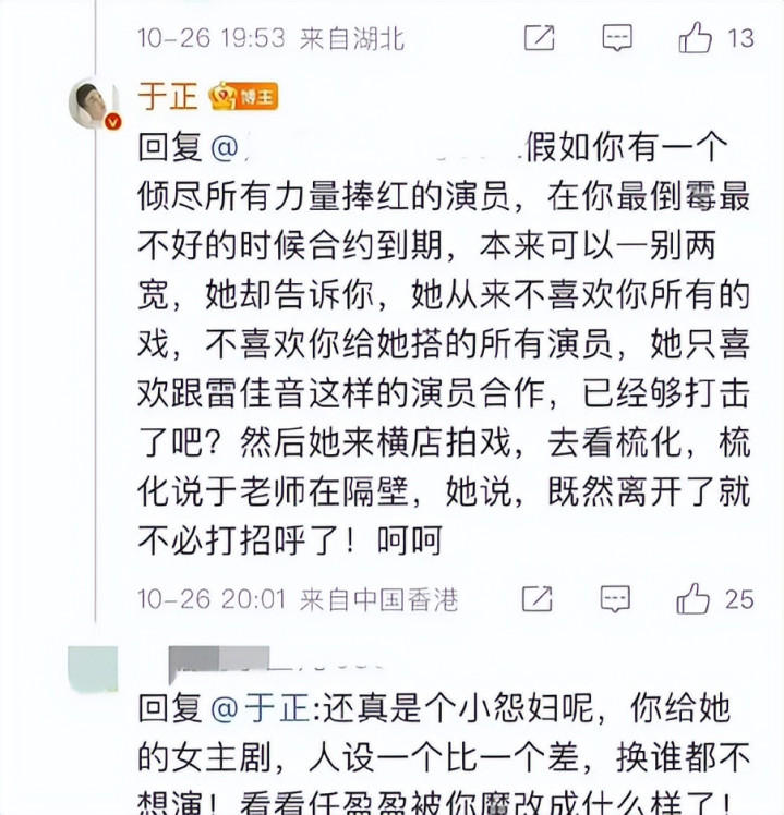 于正是真的捧新人,也是真的护短,对于每一个人新人他都是用心全力的力捧的,所以在艺人离开,或者背刺他的时候,他是真的生气,是真的骂人啊,这些年几乎每一个人离开于正的艺人都被他嘴过。