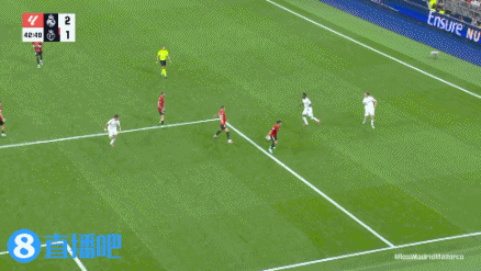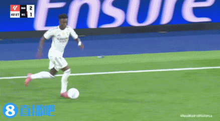 第38分钟,巴尔韦德后场断球,维尼修斯得球一条龙推进假动作虚晃后低射远角入网,皇马2分钟2球反超比分↓