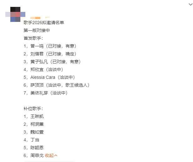 曝《歌手2026》拟邀名单, 新老歌手齐出马, 港台海外歌手混搭