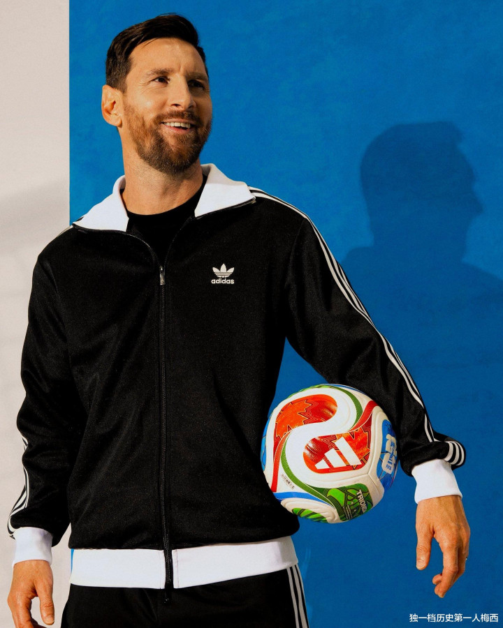 作为有过历史上最伟大世界杯冠军的独一档历史第一人,还是阿迪达斯旗下最大牌的运动员,也是现役球衣,梅西自然最能代表国际足联和阿迪达斯揭晓比赛用球。除了那一张跟其他世界杯冠军主力的合成图外,梅西自己也跟2026年世界杯官方用球单独拍摄了一组照片。