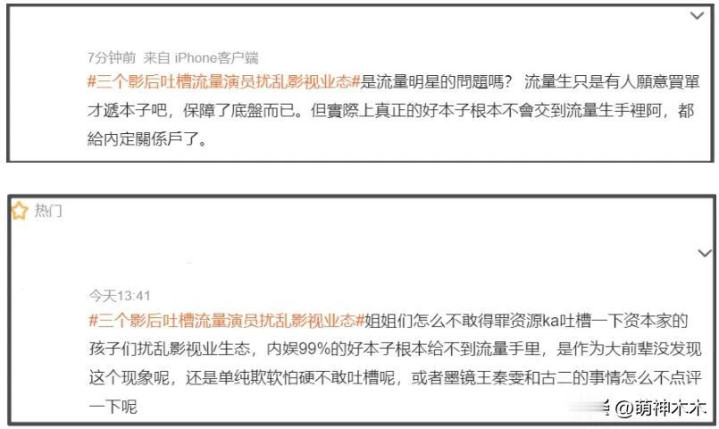 在网友看来,流量演员更像是资本工具,他们有自己的问题,但并非乱象起源。