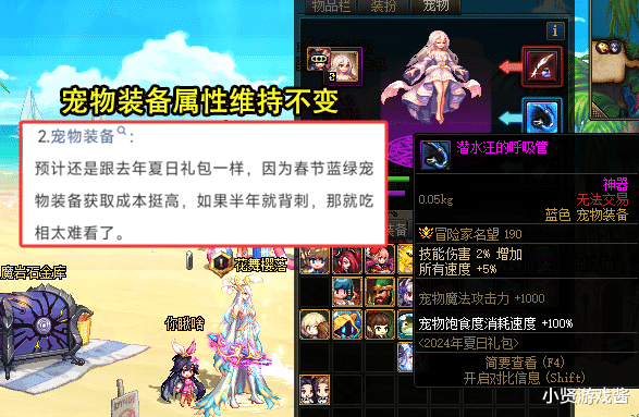 宠物装备方面,红发爆料会和去年夏日礼包一样,也就是说蓝色部位还会增加2%的技攻,红色和绿色则和新春版本的一样。