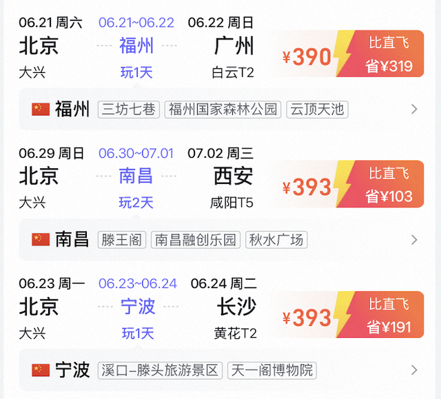 一些中转航线不仅把票价压到“地板”,而且贴心地帮你排好请假表和游玩计划,成功勾起年轻人的兴趣。