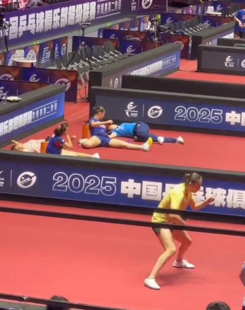 陈熠在隔壁球台已经开练了,隔壁的徐奕、王曼昱、钱天一、陈幸同在地上躺着热身呢,这松弛感满满,边热身边聊天,看到有网友说如果鲁能不是在比赛,四姐妹躺那能睡着了。陈熠看一眼隔壁,心想:就这样睡了,四位姐姐,我也来。