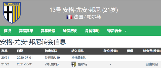 现年21岁的邦尼,身高1.89米,右脚中锋,与帕尔马的合同至2027年,德转估价2000万欧元。邦尼上赛季共为帕尔马在意甲出场37次,其中30次首发,合计出场2545分钟,独造10球,贡献6球4助。
