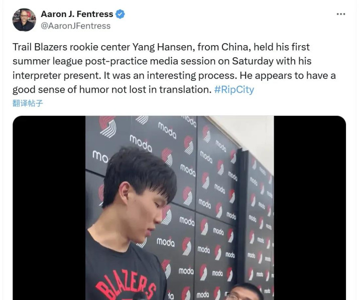 开拓者队记评价杨瀚森采访: 全程有趣, 他有不错的幽默感