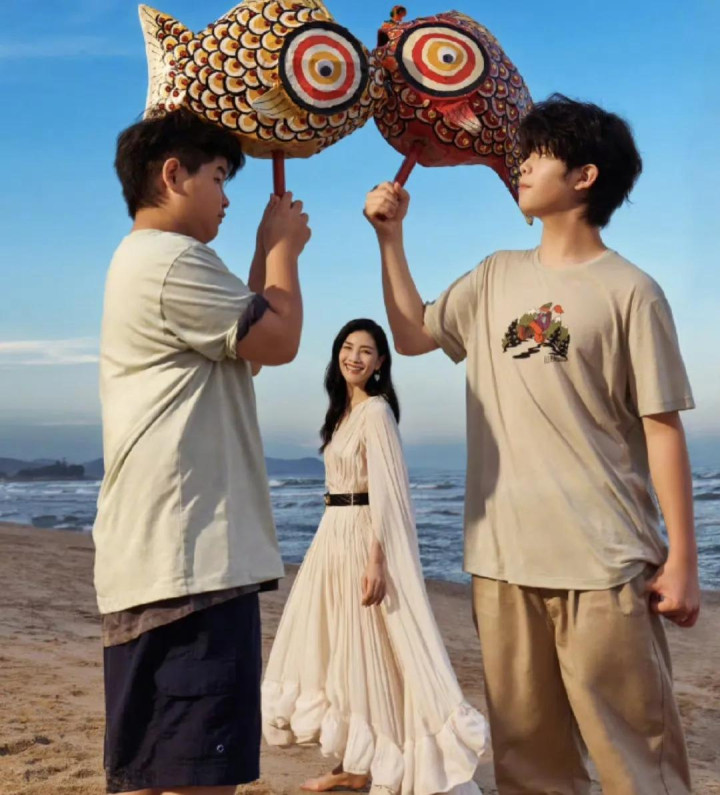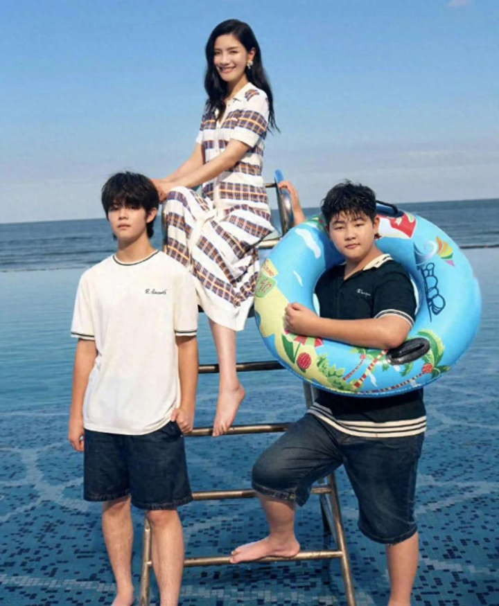 胡可站在两个儿子中间笑得一脸幸福,眼睛都笑弯了起来,而且胡可的状态是真的好,今年都49岁了,身材没有发福,脸上的皮肤也很紧致,看着就像30多岁一样。