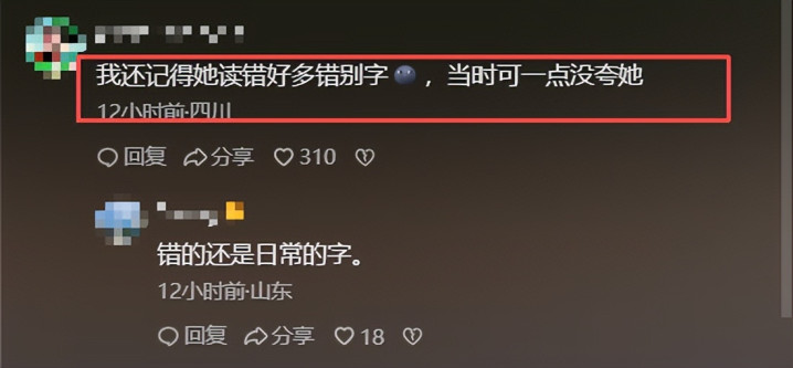 不少人又提到她曾经念错常见字,借此来揶揄她文化水平不高。