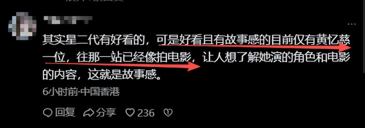 “娱乐圈不缺好看的星二代,但是好看且有故事感的,目前只有黄多多一个,往那一站就已经像拍电影。”