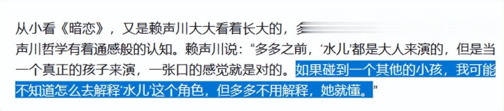 “如果碰到一个其他的小孩,我可能不知道怎么去解释‘水儿’这个角色,但多多不用解释,她就懂。”