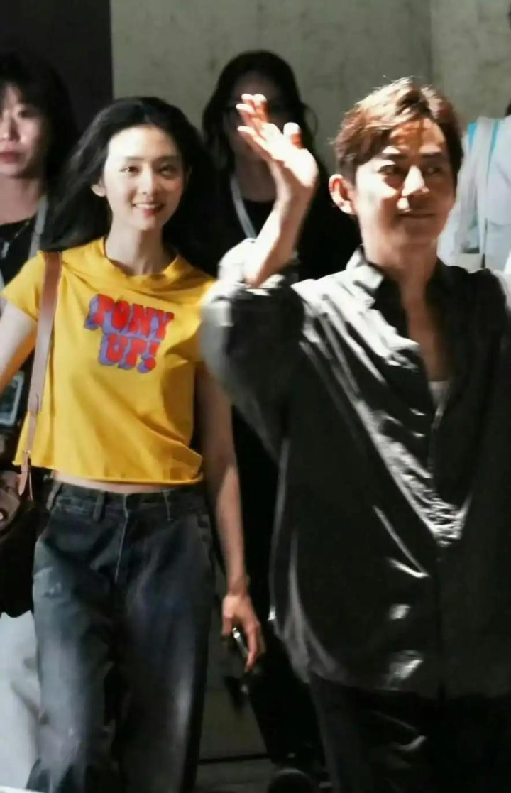 表演结束之后,和何炅一起下班的黄多多,换上了休闲的T恤牛仔裤。