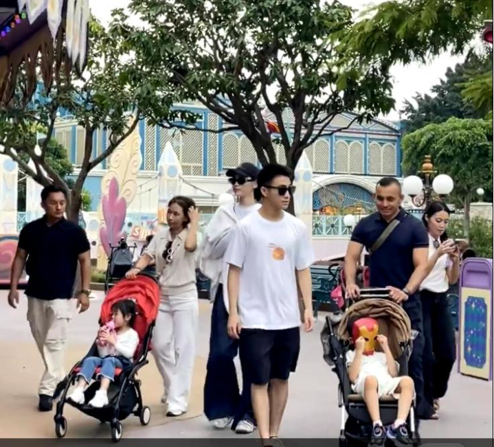 这不,近日在香港迪士尼,又有网友偶遇了他们一家子,并拍下了最真实的偶遇图。
