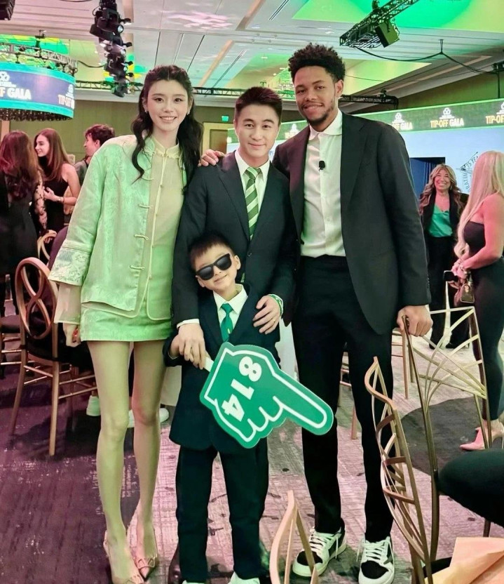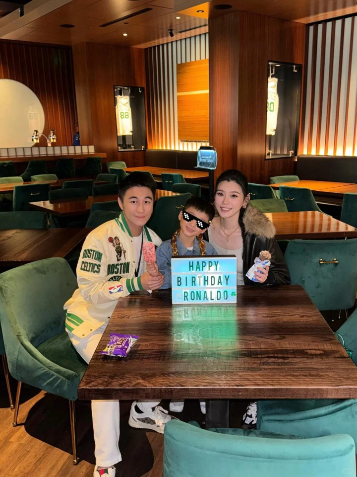 上个月23号儿子何广燊生日,夫妻俩没有大摆宴席,而是带着孩子去看了NBA比赛,还特意请来了儿子最喜欢的球星Simons,圆了小家伙的追星梦。