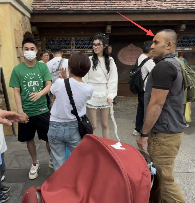 奚梦瑶全家在迪士尼! 女儿正脸曝光鼻子有点塌, 保姆保镖时刻跟着