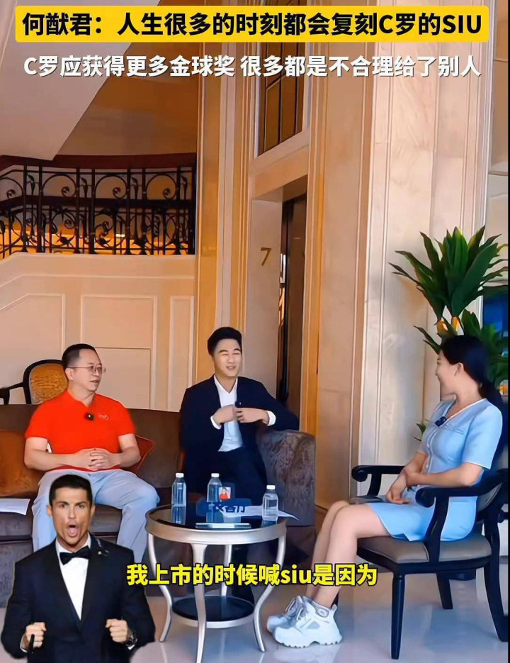 5岁的何广燊穿着小西装,身高已经到爸爸腰部了,在晚宴上还跟球星塔图姆互动,一点都不怯场。
